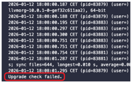 - Fixed an issue where the upgrade check did not clearly report failures when upgrade conditions were not met. The check now displays an explicit error message, allowing administrators to clearly identify incompatible upgrade scenarios.